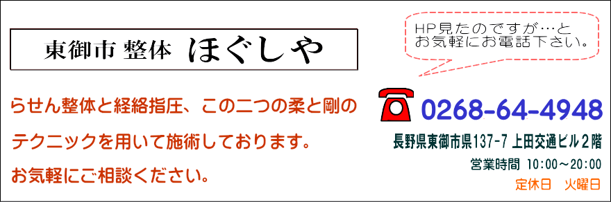 筋肉の深層部まで緩める事が可能で、らせん整体で緩めてから、経絡指圧を行います。
